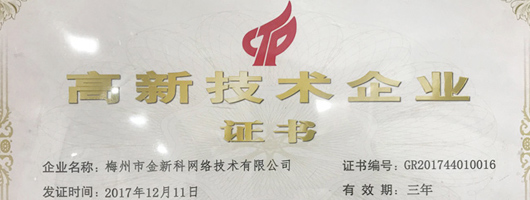 2017年12月11日,國家高新技術(shù)企業(yè)認定服務(wù)平臺對外公布了“廣東省2017年第二批擬認定高新技術(shù)企業(yè)名單”,梅州市金新科網(wǎng)絡(luò)技術(shù)有限公司作為一家互聯(lián)網(wǎng)信息化服務(wù)類高科技產(chǎn)業(yè)的公司,順利通過認定,榮登榜單之中!